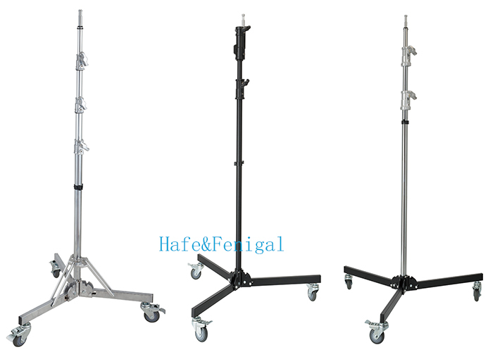 These rolling base light stands are widely used in film and television studios where lighting positions need frequent adjustment between shots. They are suitable for key lights, fill lights, background lights, and overhead lighting fixtures.