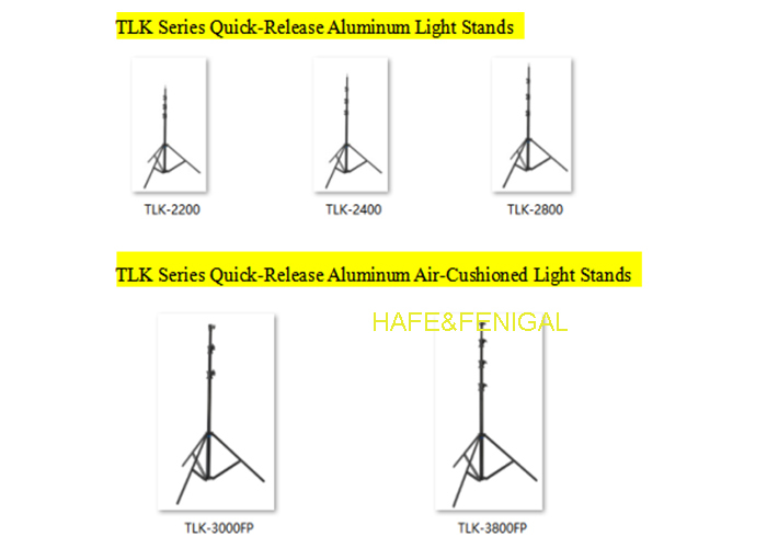 A Série TLK compreende tripés de luz de alumínio de liberação rápida de nível profissional, projetados para fotógrafos, cinegrafistas e técnicos de estúdio. Esses tripés apresentam um mecanismo de implantação rápida que permite que as pernas se estendam automaticamente quando colocadas no chão e se retraiam quando levantadas, reduzindo significativamente o tempo de configuração e desmontagem. A série inclui modelos de liberação rápida padrão e variantes com amortecimento a ar (FP) para um ajuste de altura mais suave e maior durabilidade.