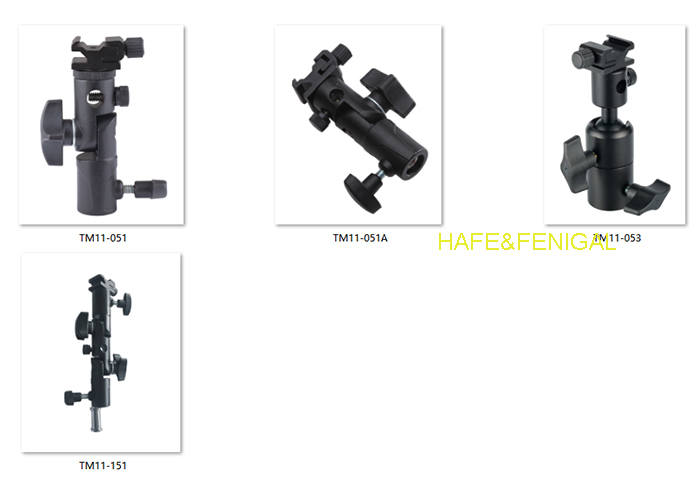 | TM11-057A | Gimbal Hot Shoe (Swivel) | ABS plastic + metal swivel/gimbal brackets | Black | Angle-adjustable accessory mounting on gimbal rigs | Gimbal-compatible; 180° tilt + 360° swivel; 1.1kg max load |